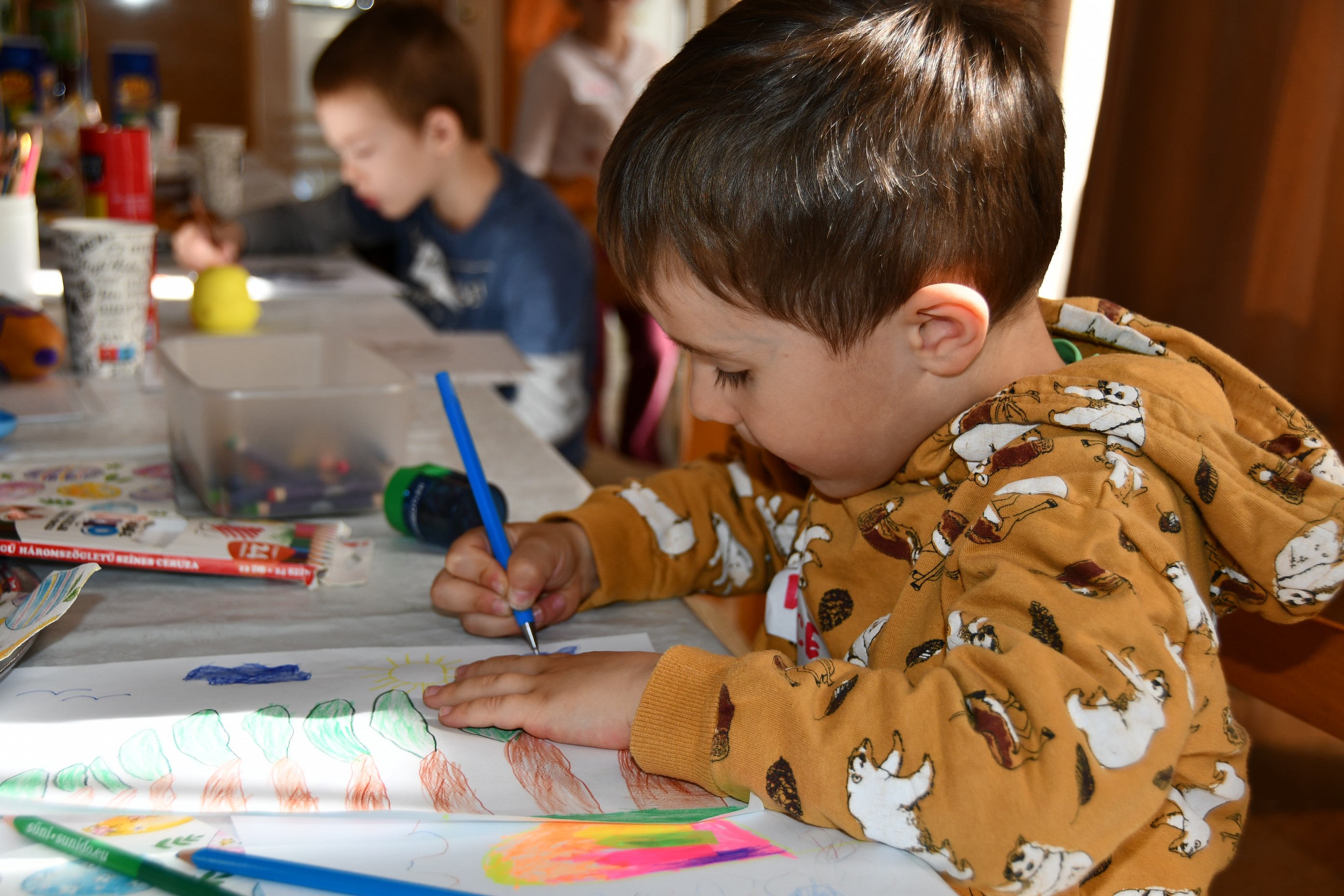 A közös játékok során a gyerekek egymással is megismerkedhettek és számos új barátság is szövődött közöttük. Állatsimogatónk is volt – a gyerekek nagy örömére –, három nyuszi-vendéggel.