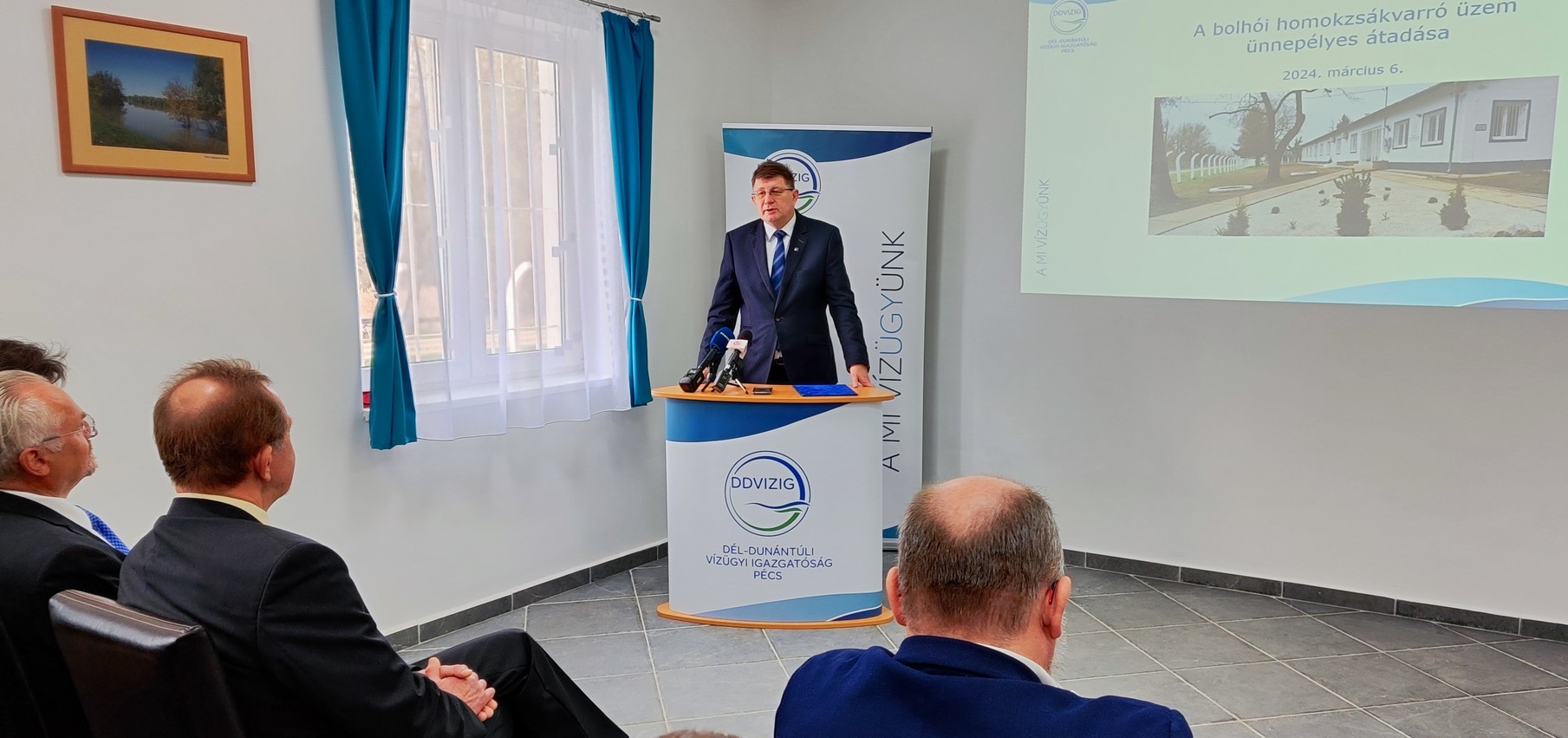 A Dél-dunántúli Vízügyi Igazgatóság 2024. március 6-án ünnepélyes keretek között avatta fel és indította el – az országban egyedülálló – homokzsákvarró üzemét.