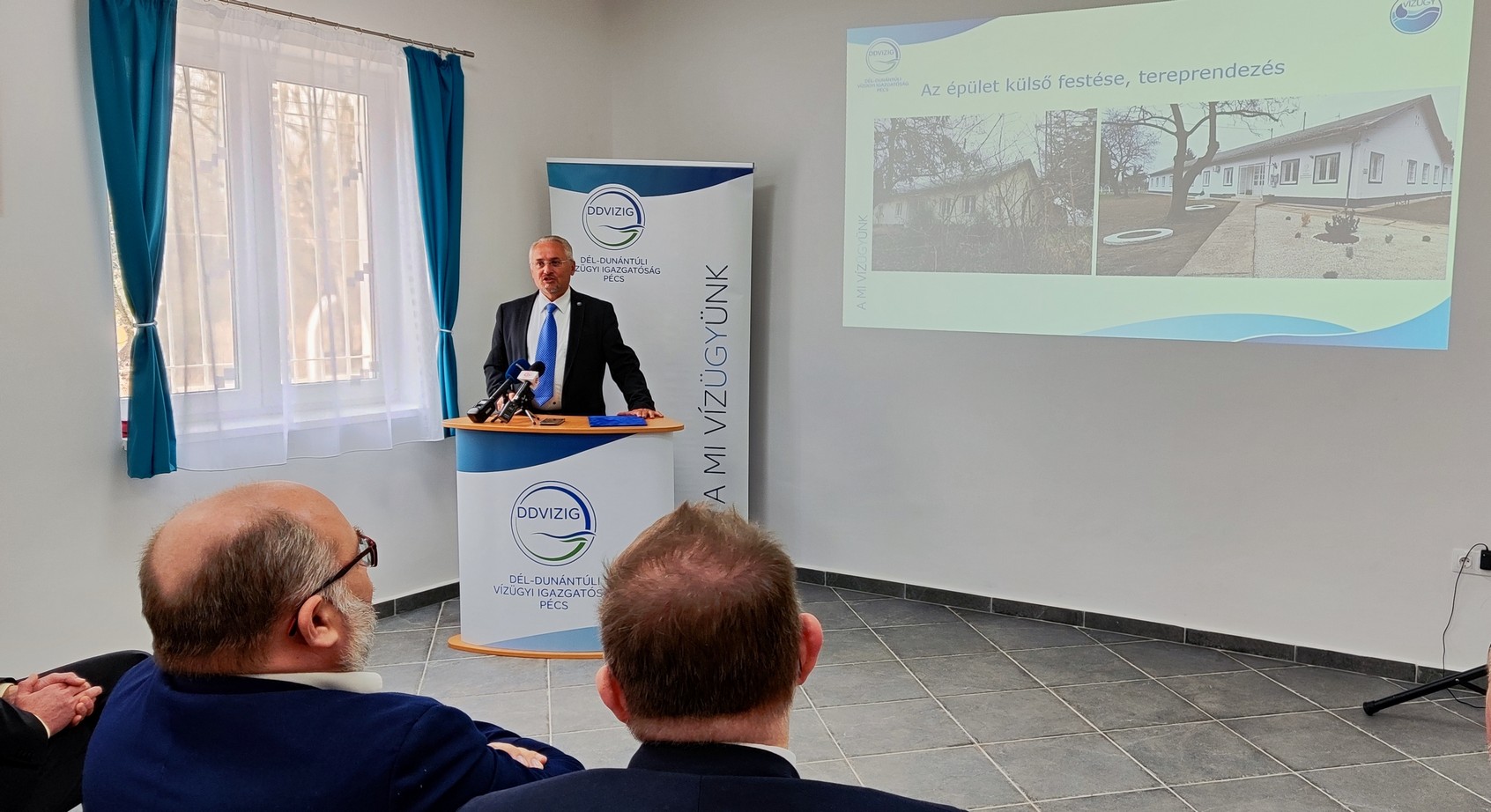A mai hivatalos átadón részt vett és köszöntőt mondott Réthy Pál, a Belügyminisztérium közfoglalkoztatási és vízügyi helyettes államtitkára, Láng István, az Országos Vízügyi Főigazgatóság főigazgatója, Nagy Csaba országgyűlési képviselő, a Dél-dunántúli Területi Vízgazdálkodási Tanács elnöke, Biró Norbert, a Somogy Vármegyei Közgyűlés elnöke, valamint Bencs Zoltán, a Dél-dunántúli Vízügyi Igazgatóság igazgatója, a Magyar Hidrológiai Társaság Baranya Vármegyei Területi Szervezetének elnöke.