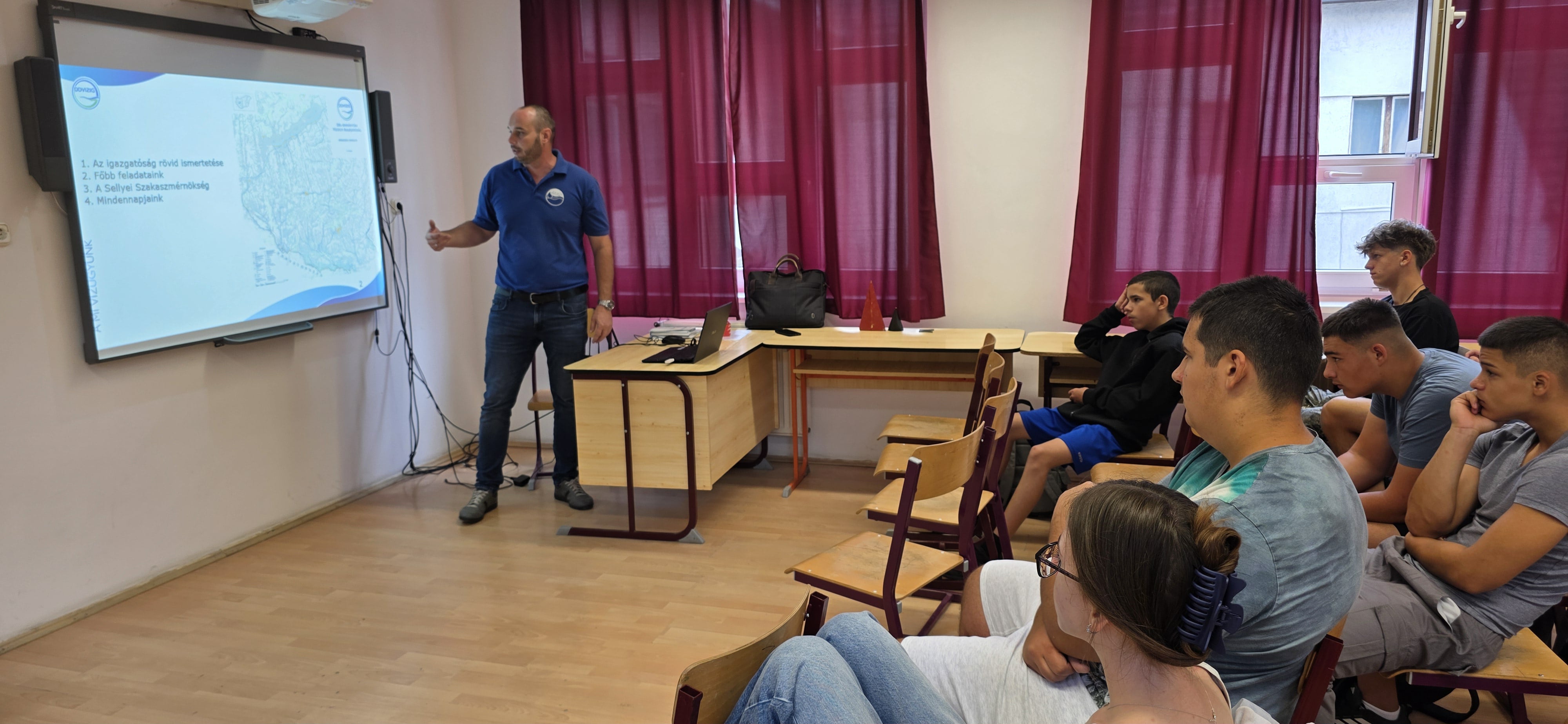 A Dél-dunántúli Vízügyi Igazgatóság ebben az évben is hozzájárult a nap sikeréhez. Boros Bálint, a Sellyei Szakaszmérnökség szakaszmérnöke volt az iskola egyik vendége, aki a szakmai területét érintő előadása mellett vízügyes kisfilmmel és -kvízjátékkal is készült, a diákok nagy örömére.