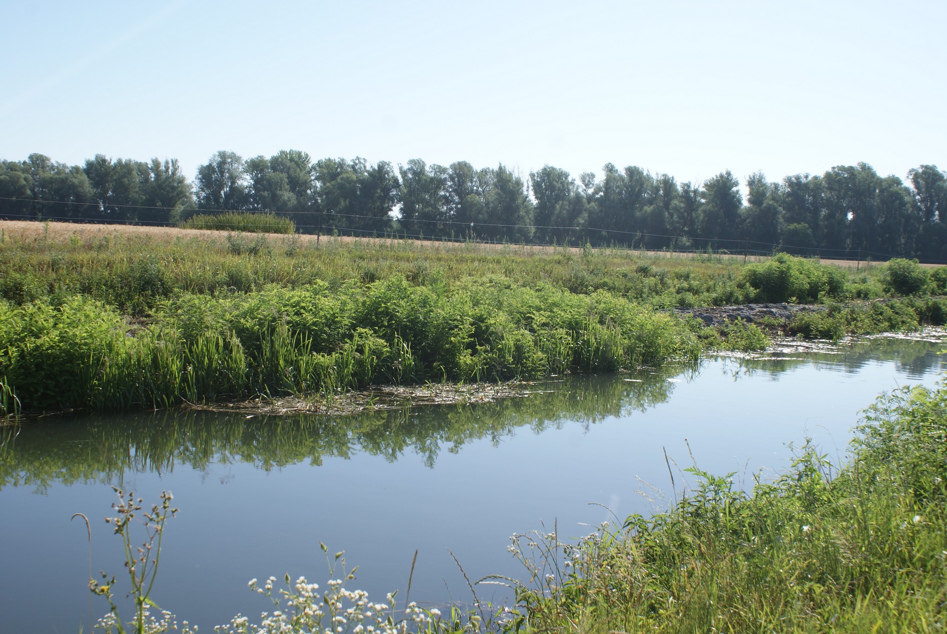 Június 13-án nyitottuk meg a Korcsina-csatorna oldalzsilipjeit, s ezzel megkezdődött a Lakócsai-morotva feltöltése. A fotók a 3 heti vízpótlás utáni feltöltött állapotot mutatják.