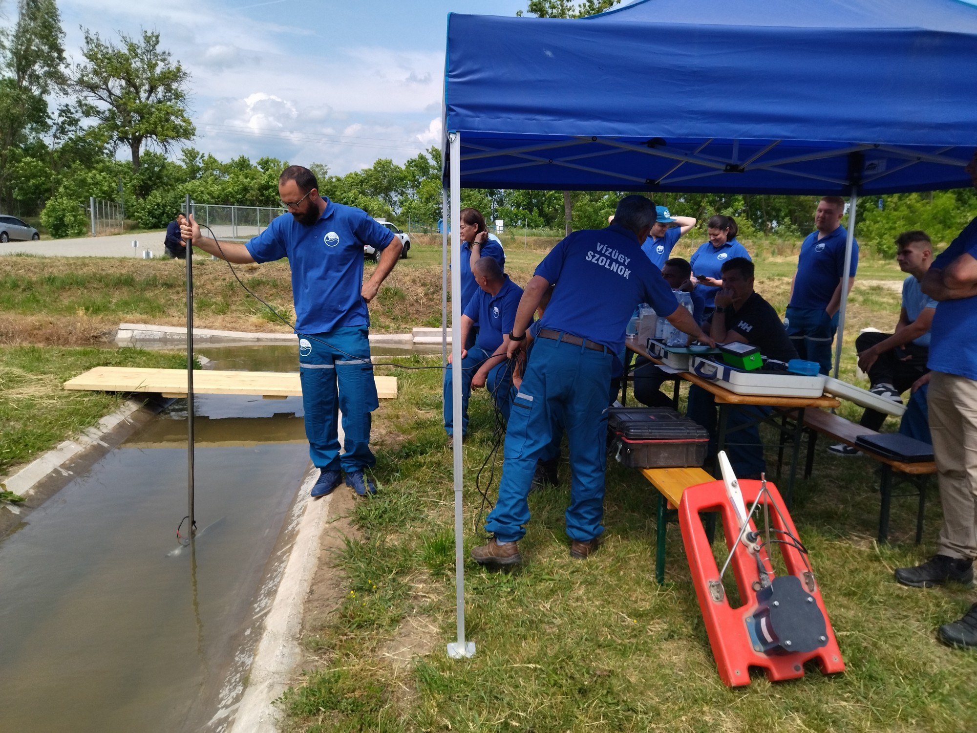 Az egynapos képzési programok közül a Hidrometeorológiai mérések és a vizek mennyiségi mérésének gyakorlata című oktatás zajlott 2025. május 21-én. A Dél-dunántúli Vízügyi Igazgatóság Vízrajzi és Adattári Osztályának két, a vízkárelhárítási beosztásban szereplő új dolgozója vett részt a programon, csatlakozva egy társ vízügyi igazgatóság munkatársaihoz. A továbbképzésen kollégáink megismerték és gyakorolták az ágazatban alkalmazott méréstechnológiákat, azok dokumentálásának módszereit, a jelenlegi mérőműszerek gyakorlatban alkalmazott fogásait. A megszerzett és elmélyített ismeretek birtokában még hatékonyabban lesznek képesek a rájuk bízott vízrajzi mérési feladatok ellátására.