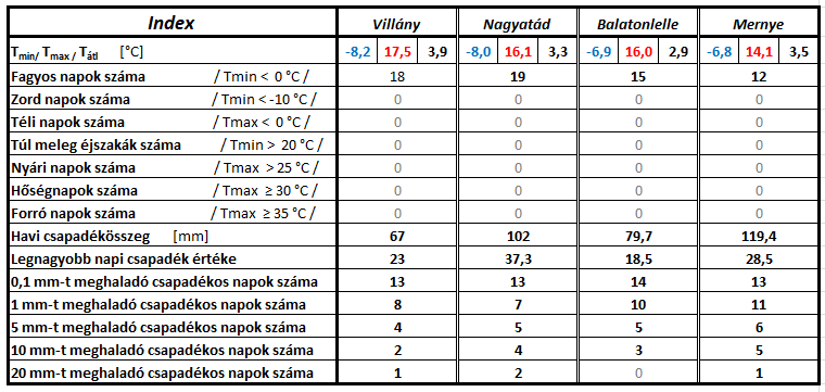 A december hónap jellemző vízállásait (szélső és középértékeket) az alábbi táblázat mutatja: