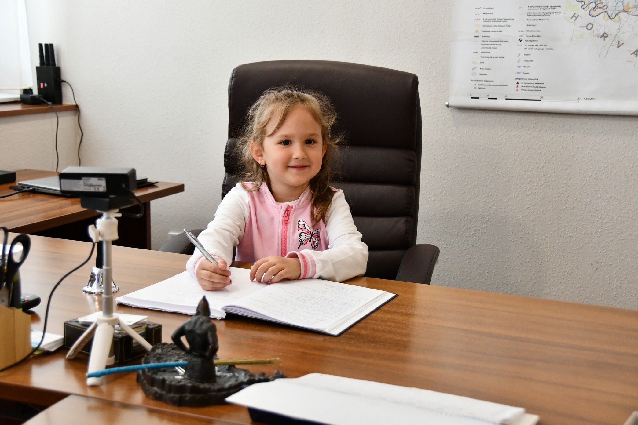 A gyerekeket Bencs Zoltán igazgató köszöntötte, aki saját irodájában fogadta őket. A gyerekek bele is ülhettek az igazgatói székbe, sőt, még igazgatót is választhattak maguk közül.