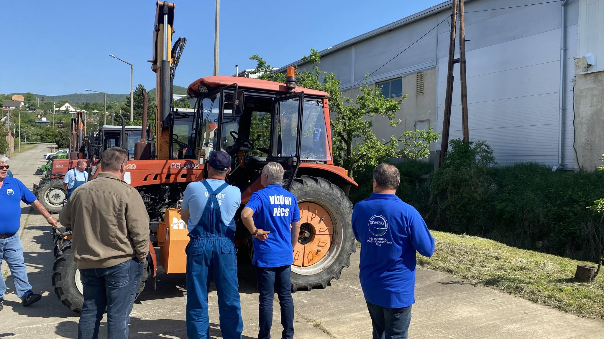 A tavaszi gépszemlénket április 12-én tartottuk a Dél-dunántúli Vízügyi Igazgatóság Műszaki Biztonsági Szolgálatának telephelyén, ahol Bencs Zoltán igazgató, György Zsolt műszaki igazgatóhelyettes, Pehr Nándor pécsi szakaszmérnök és Kovács Tibor pécsi szakaszmérnök-helyettes mellett a Pécsi Szakaszmérnökség területi felügyelői is részt vettek.